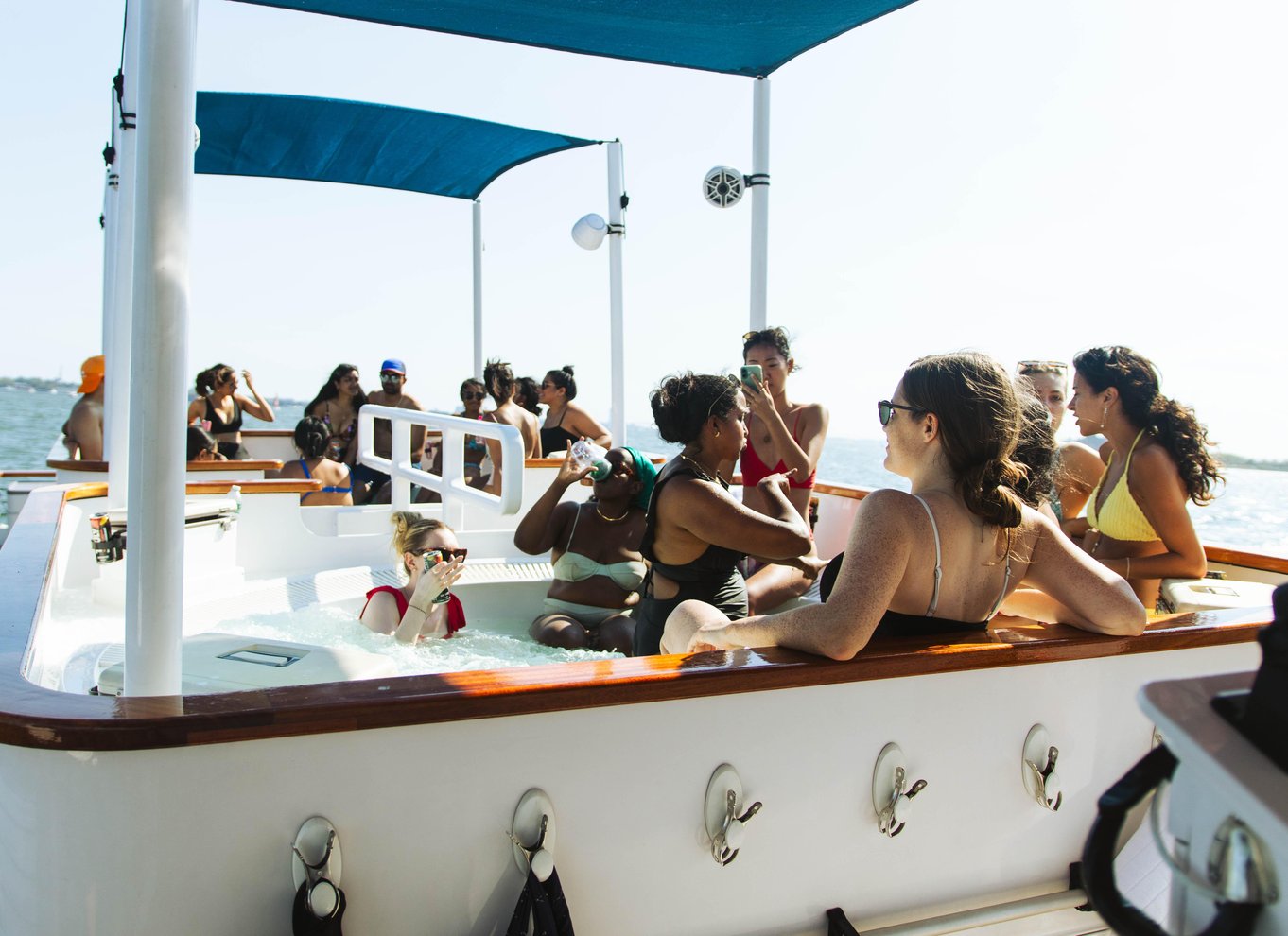 Gather your friends and celebrate in style as you indulge in the ultimate relaxation of your own private hot tub on the water. Sip on your favorite beverages, soak in the warm waters, and create memories while the staff ensures your comfort and enjoyment throughout the journey.